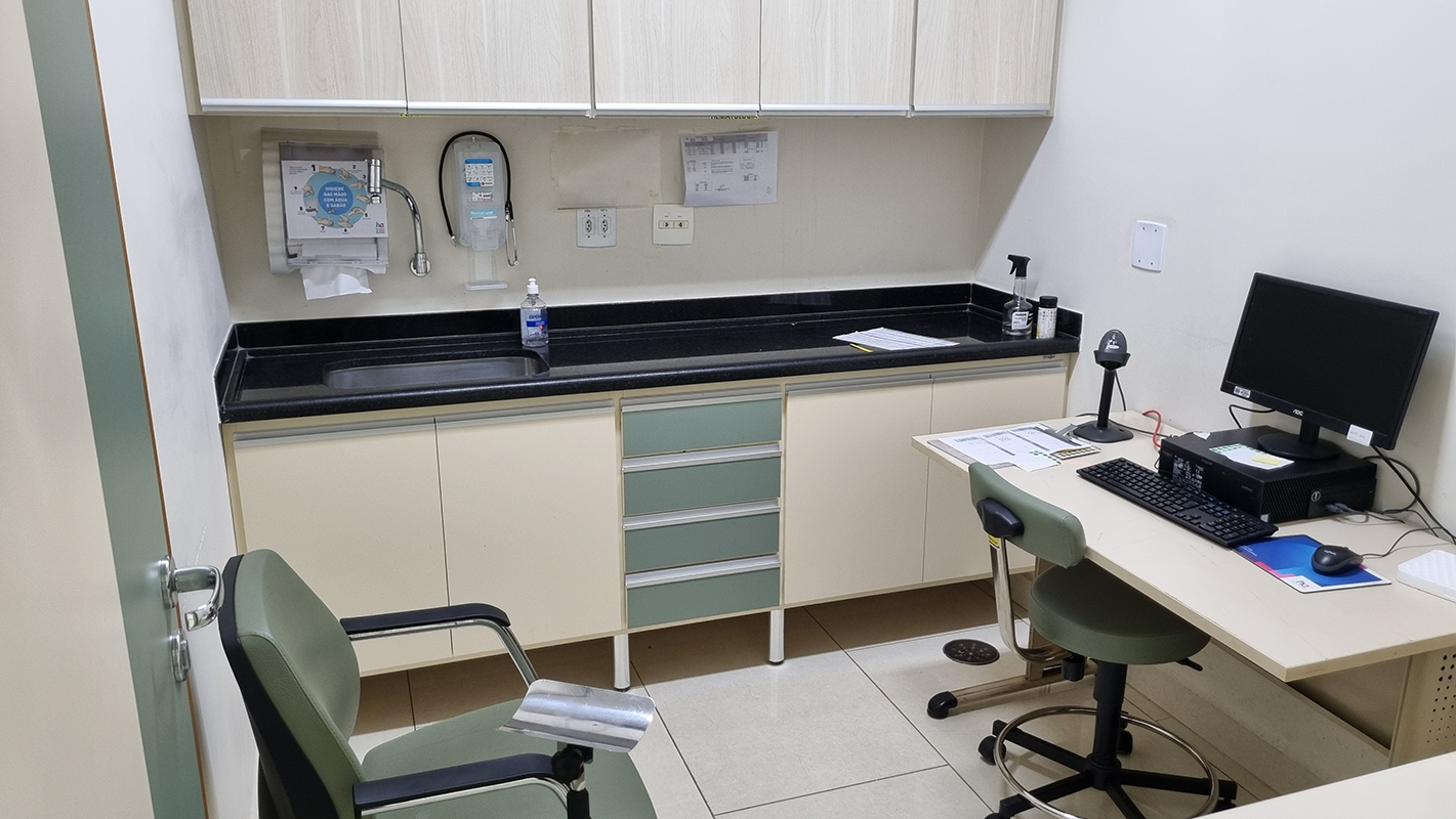 A área assistencial conta com Consultórios para atendimento médico, e salas de coleta de exames de sangue, para que posteriormente sejam preparadas para envio ao laboratório local e central quando necessário pelo protocolo. (Mostrar sala de coleta, centrífugas, consultórios).