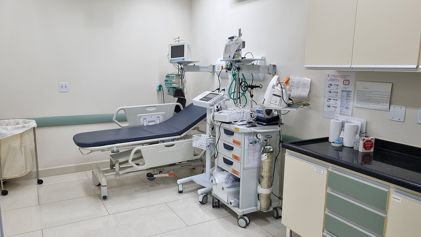 O centro de infusão de drogas possui toda infraestrutura necessária para desenvolvimento de ensaios clínicos em todas as suas fases. Próximo a infusão está alocado a sala de emergência, em caso de qualquer intercorrência do estudo a equipe está treinada e habilitada para o atendimento da ocorrência.